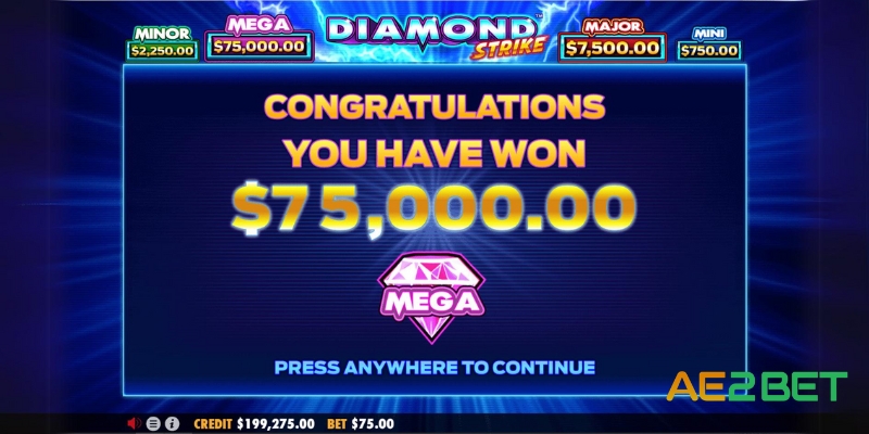Trò chơi Slot Diamond Strike AE3BET.NET sẽ cung cấp nhiều giải thưởng hấp dẫn, đặc biệt là giải Jackpot. Vì thế, tùy vào diễn biến của trò chơi, người chơi cần đưa ra quyết định cược hợp lý, đặc biệt là ở những thời điểm quan trọng. Là một người chơi thông minh, bạn hãy tự tin lựa chọn đúng thời điểm để tối ưu hóa cơ hội giành được giải thưởng lớn!